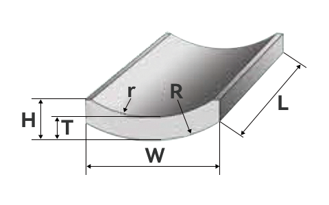 Wet Press Segment MagnetRR(-0.5 ~ +1)mm± 0.1mm