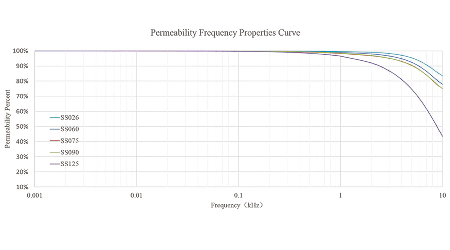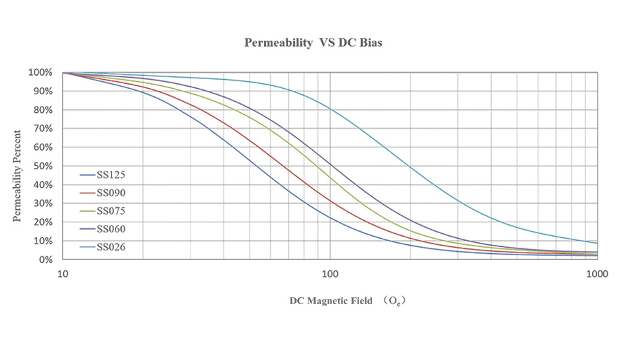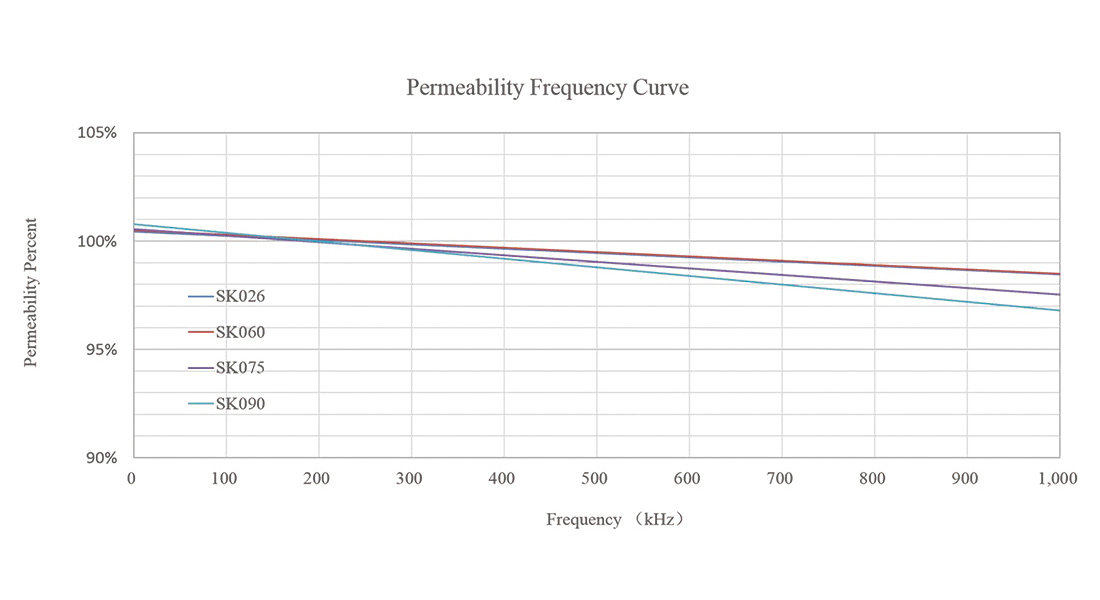 The DC bias characteristics and power loss characteristics of the second-generation FeSi cores are equivalent to those of amorphous magnetic powder cores, and they are mainly used in home appliances, distributed photovoltaic inverters, etc. Compared with high flux magnetic powder cores, the SF type is a more economical choice; compared with sendust, its DC bias performance has obvious advantages; compared with SK series, its performance of core loss is also greatly improved.