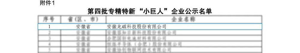 近日,經(jīng)國(guó)家工信部統(tǒng)一審核后,安徽省經(jīng)信廳公布了第四批專精特新“小巨人”企業(yè)名單,公司憑借在磁性材料領(lǐng)域的深耕與積累,榮獲國(guó)家級(jí)專精特新“小巨人”企業(yè)稱號(hào)。