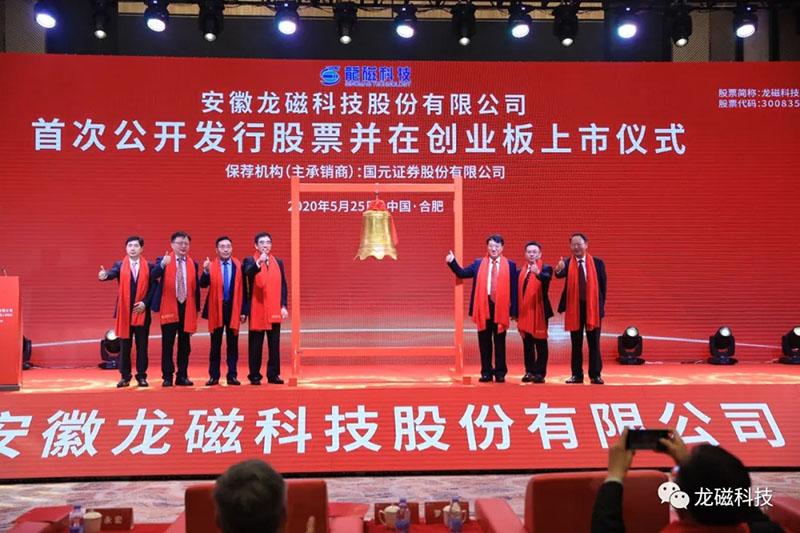 2020年5月25日,龍磁科技在安徽合肥舉行了首次公開發(fā)行股票并在創(chuàng)業(yè)板上市儀式,并通過深交所云上直播廳進(jìn)行了線上直播。